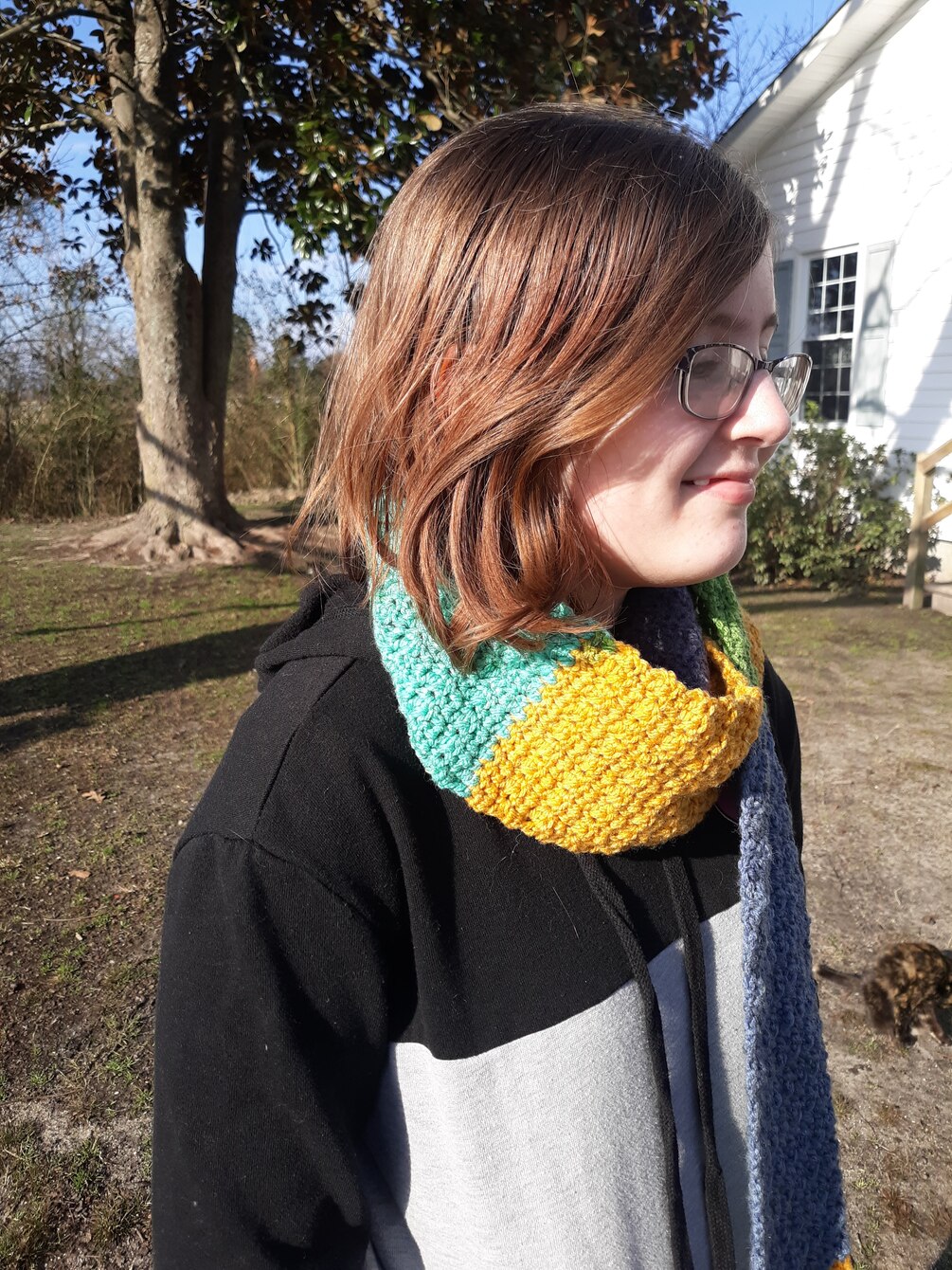 Size: Approximately 6” wide and 65” long when complete. More yarn will be required for additional fringe.